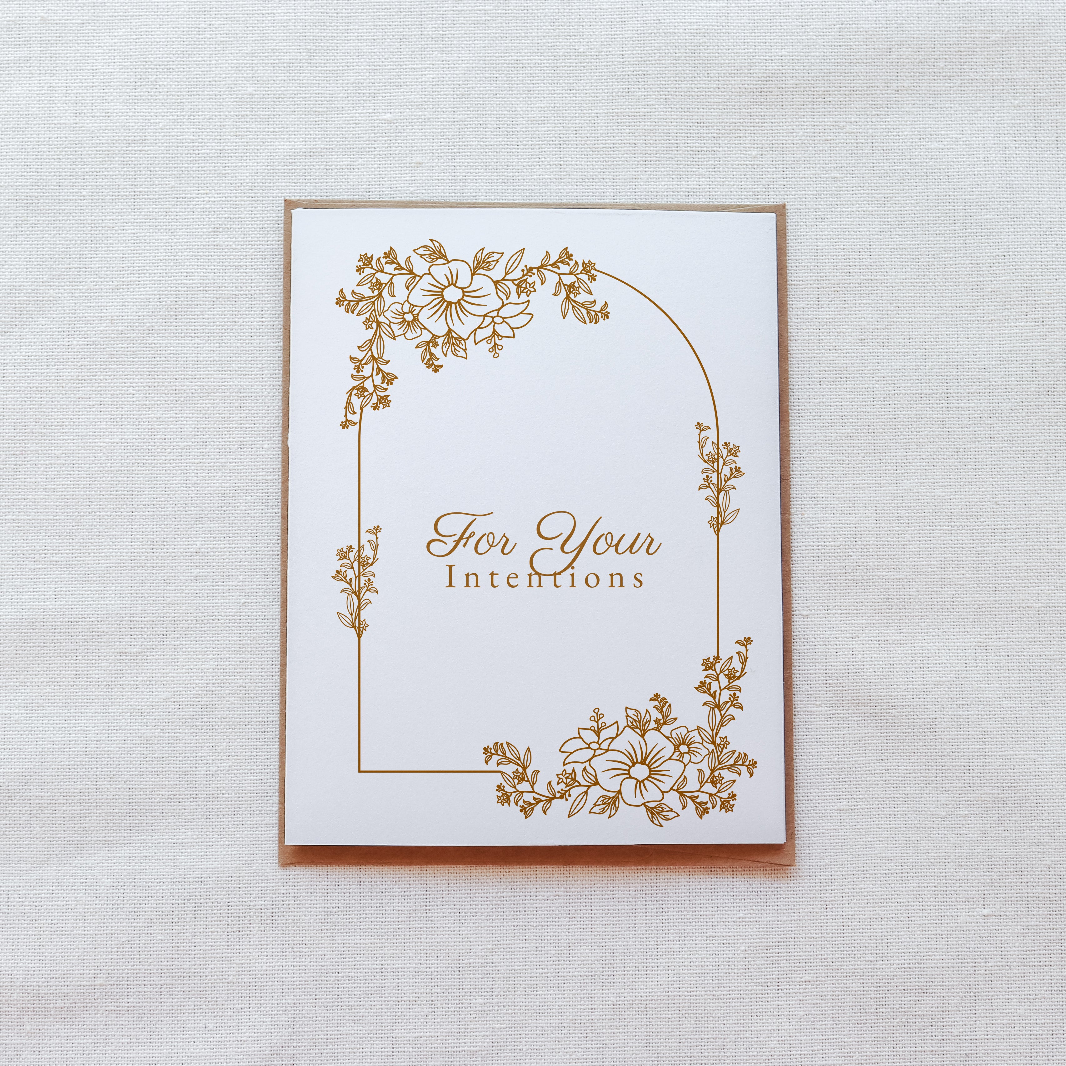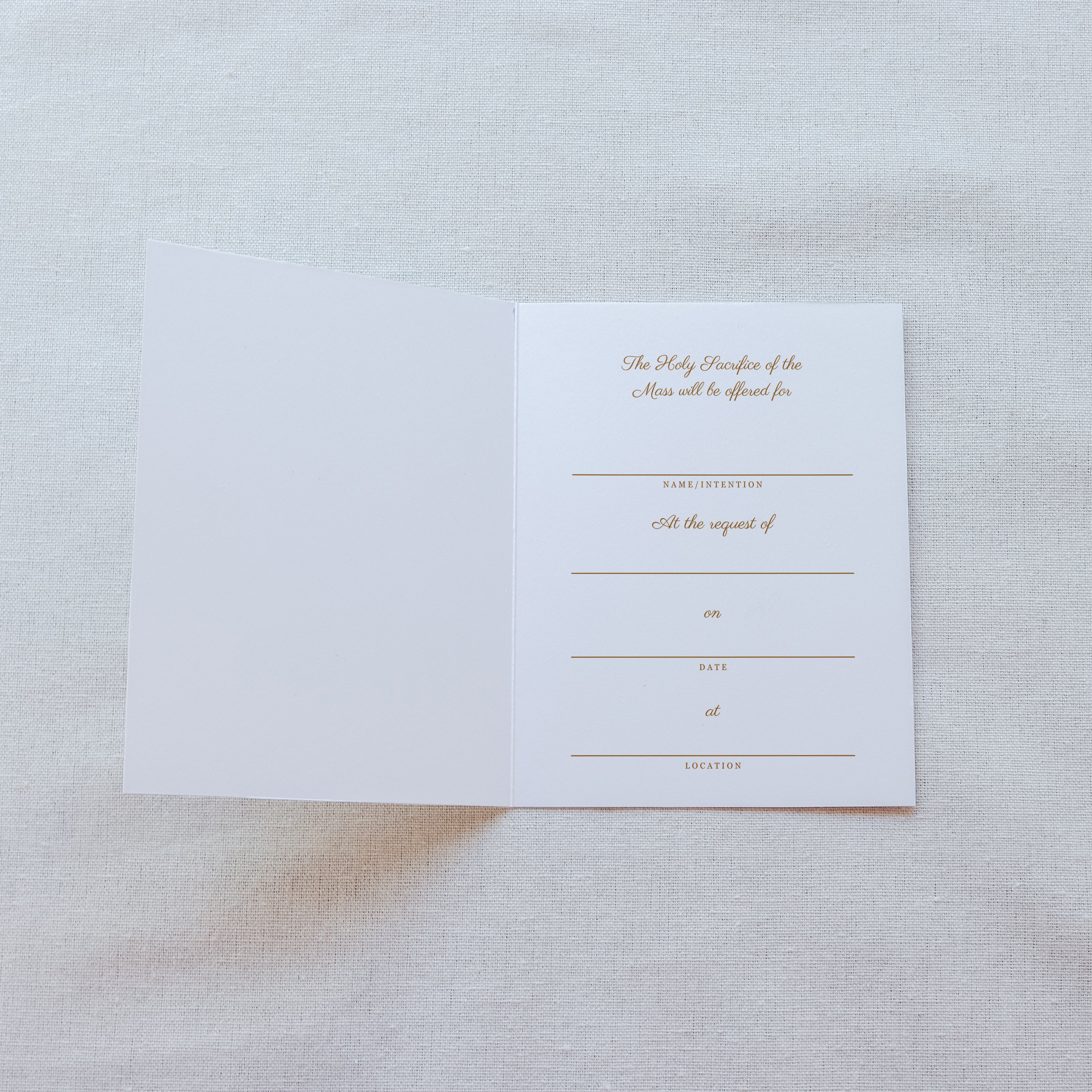 This card is a reverent way to let someone know they are being prayed for at Mass. The earthy floral archway design brings a sense of peace and beauty, making it especially fitting for moments of comfort, encouragement, or remembrance.
