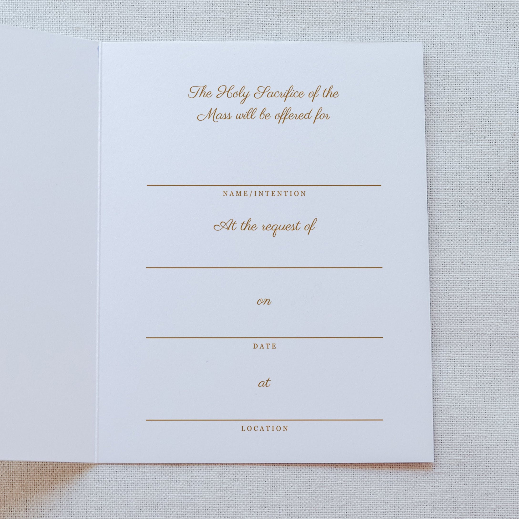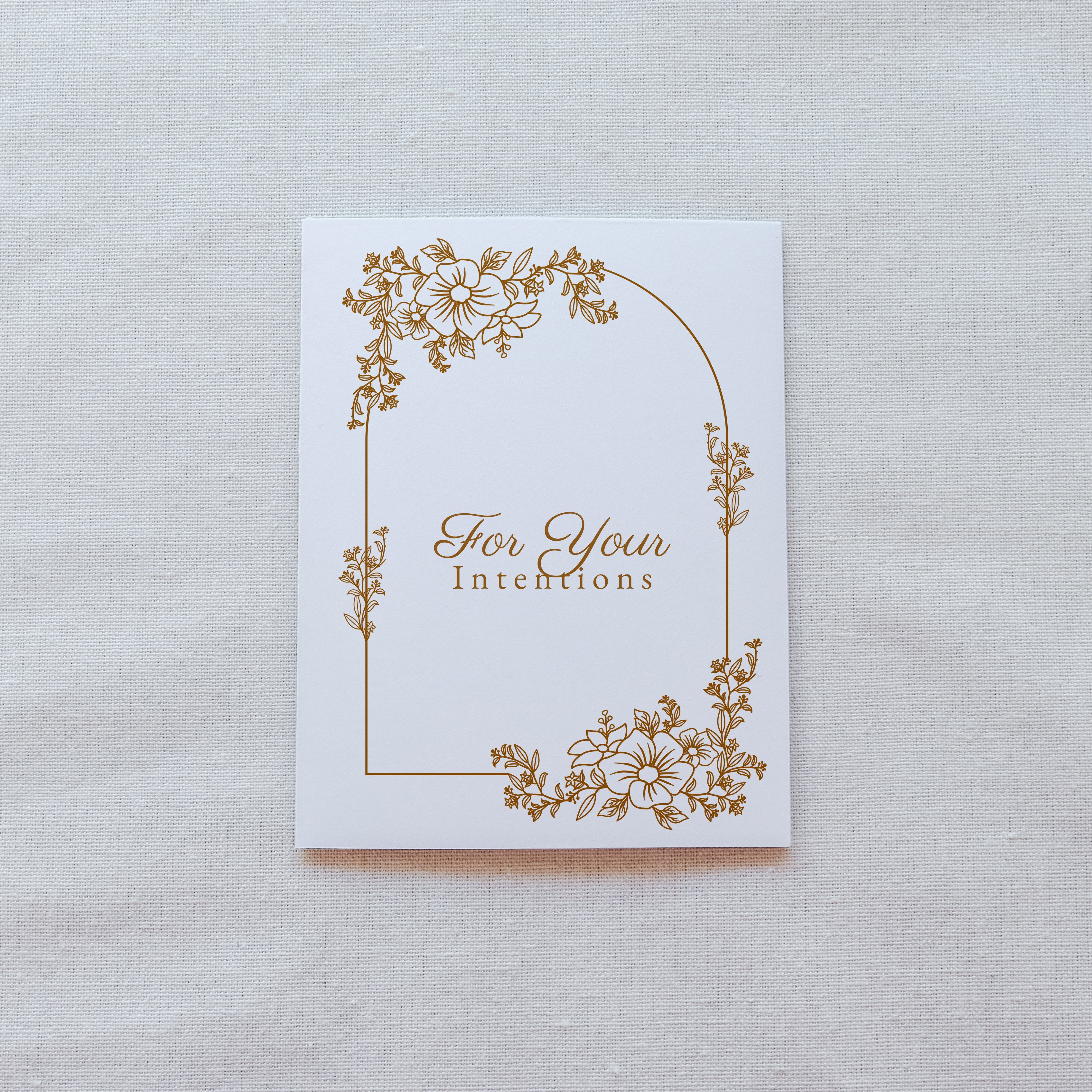 Offer prayers in a thoughtful way with this Mass intention card, featuring a graceful floral archway. Includes a space to write your Mass intention inside.