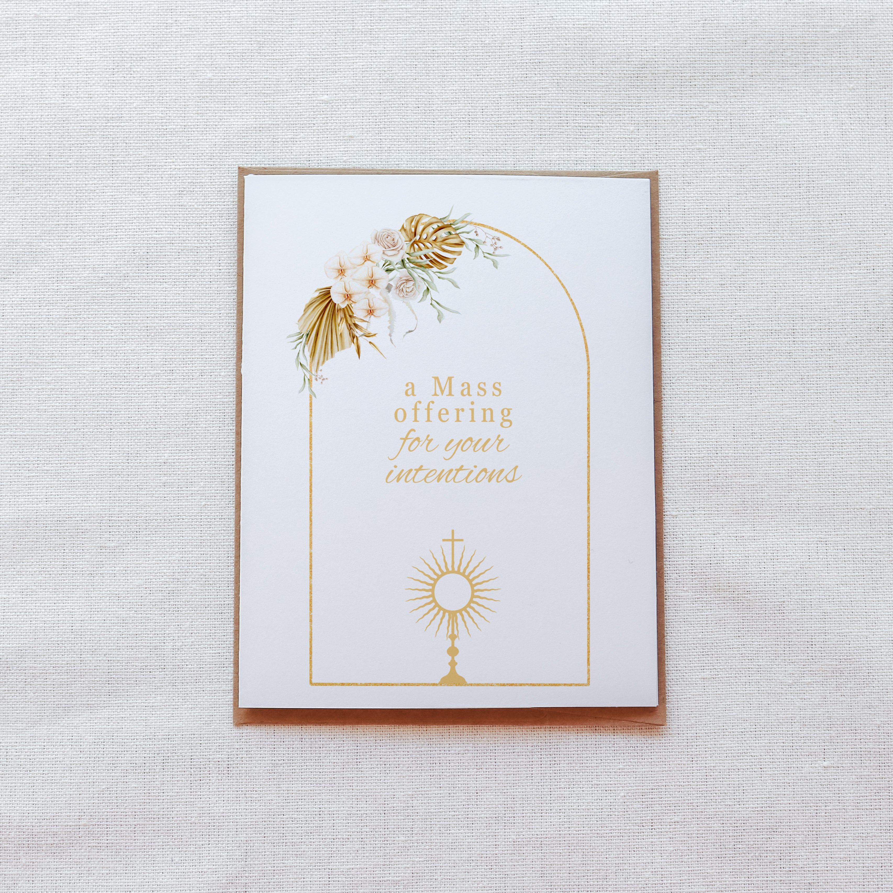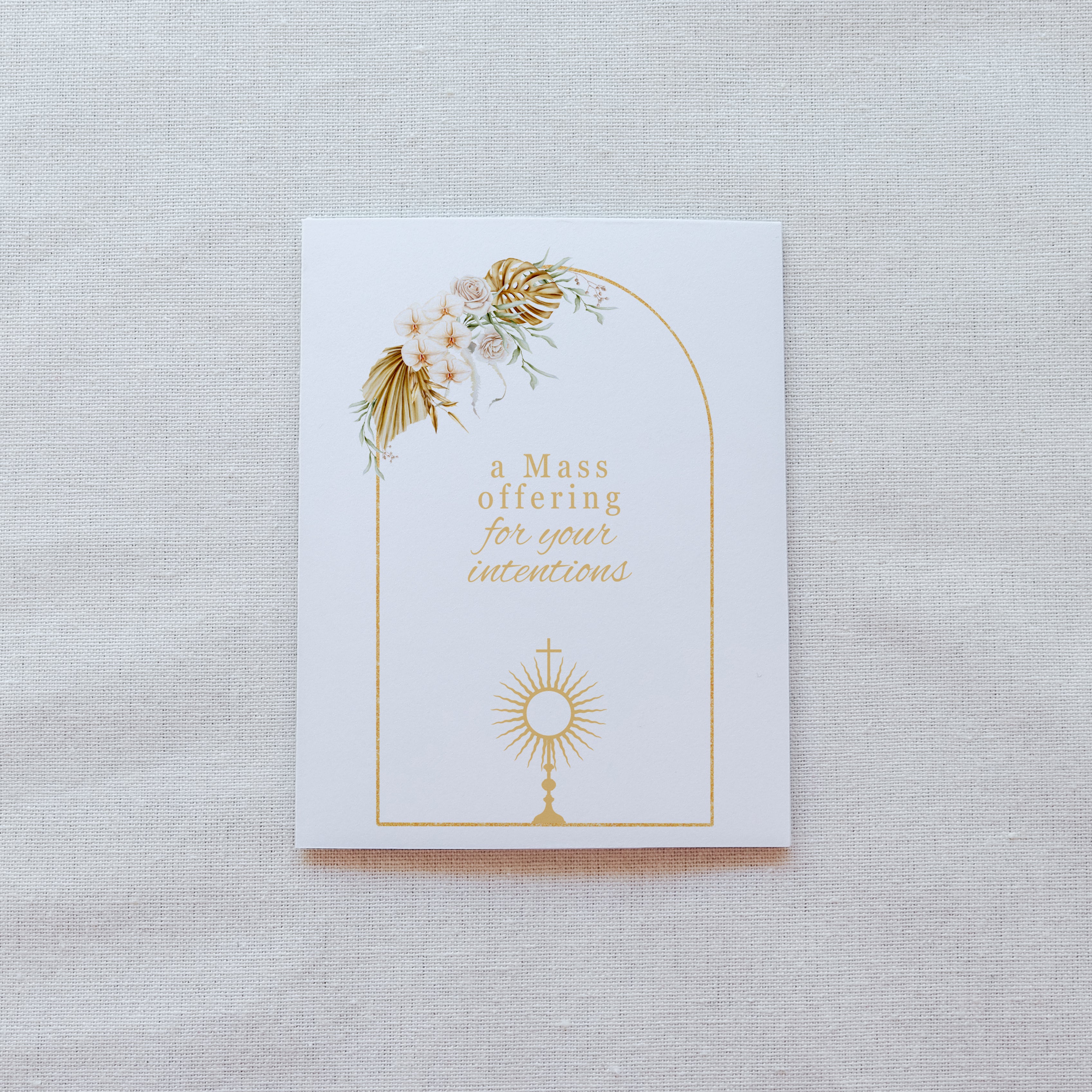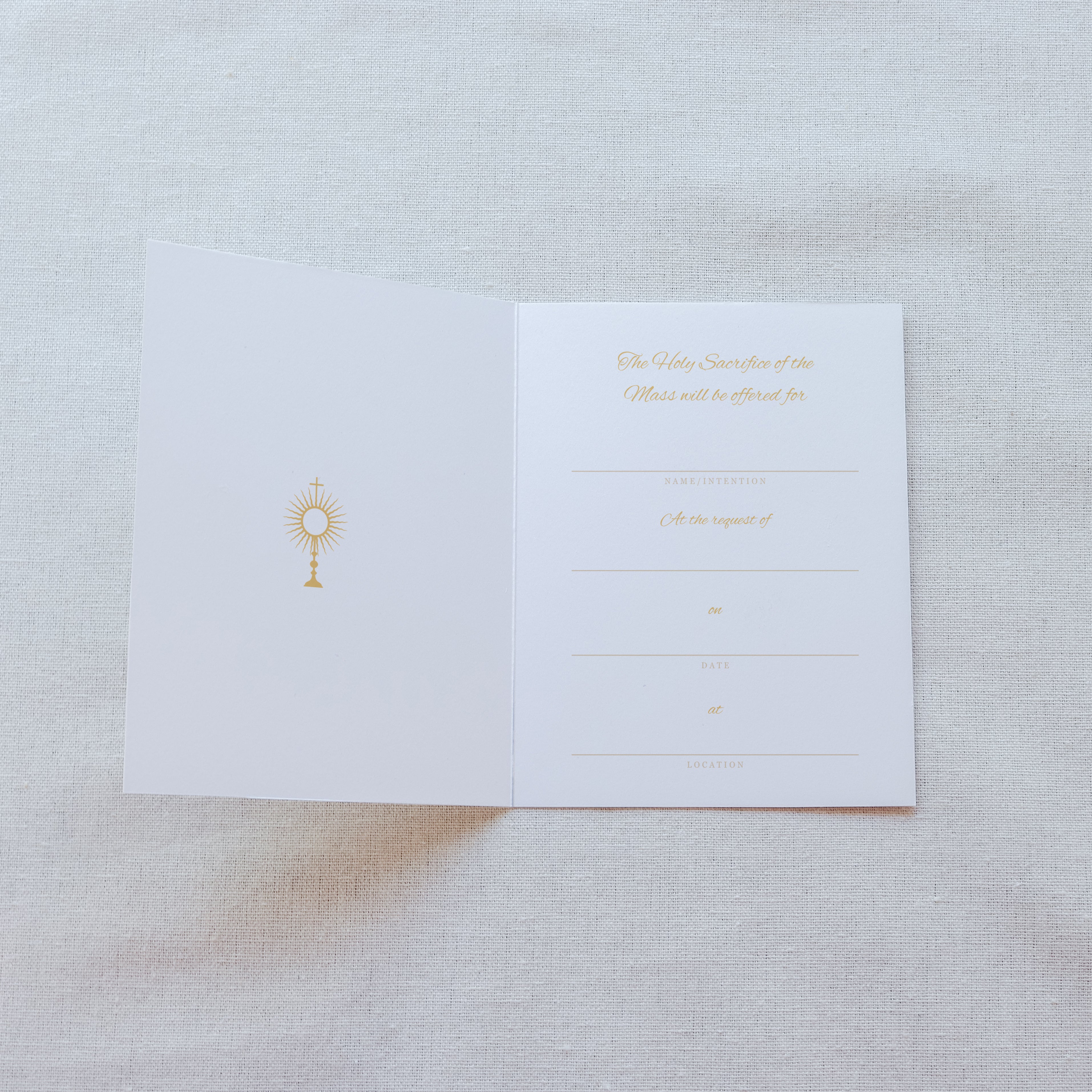 Offer prayers in a thoughtful way with this Floral Mass intention card, adorned with an image of a Monstrance. Includes artwork and a space to write your Mass intention inside.