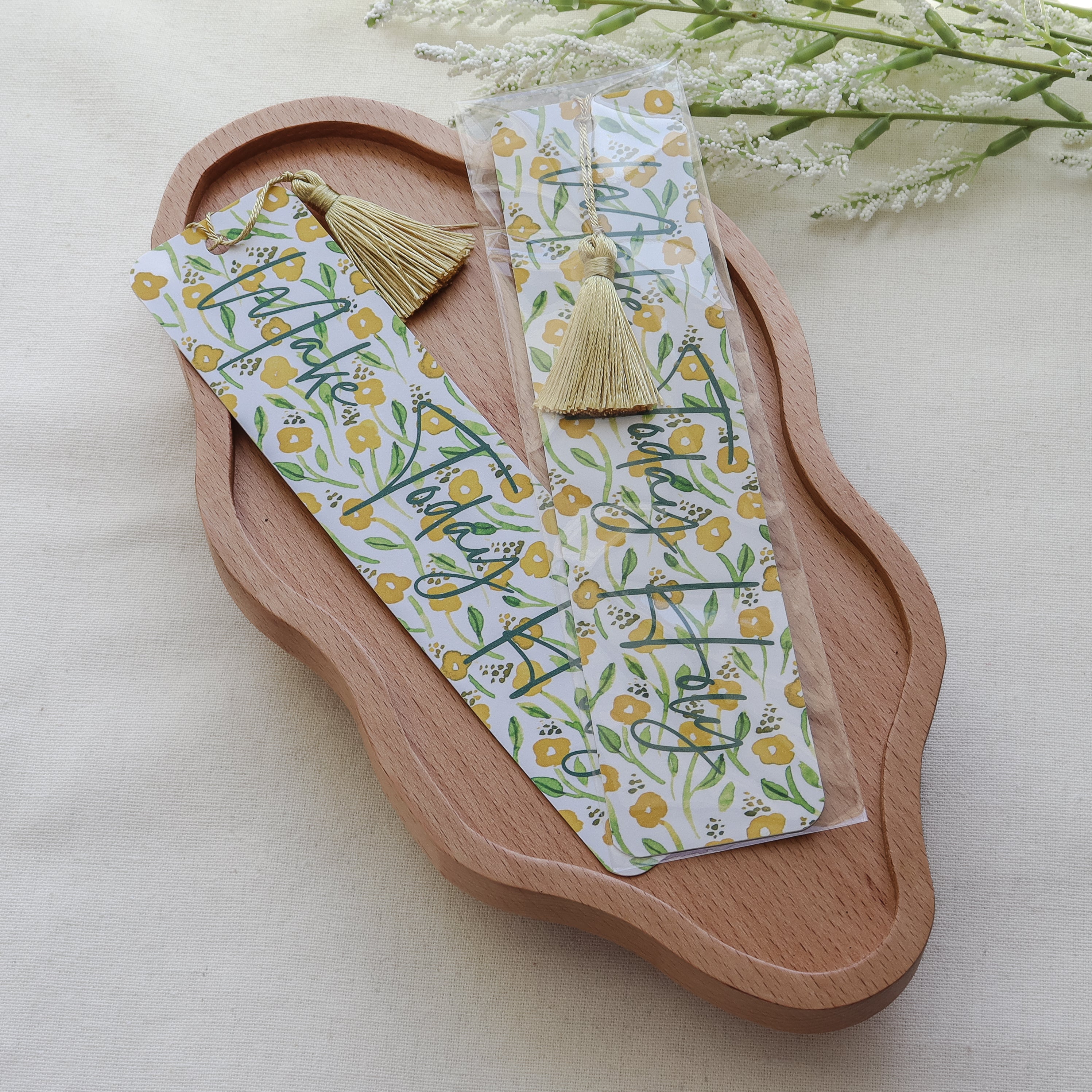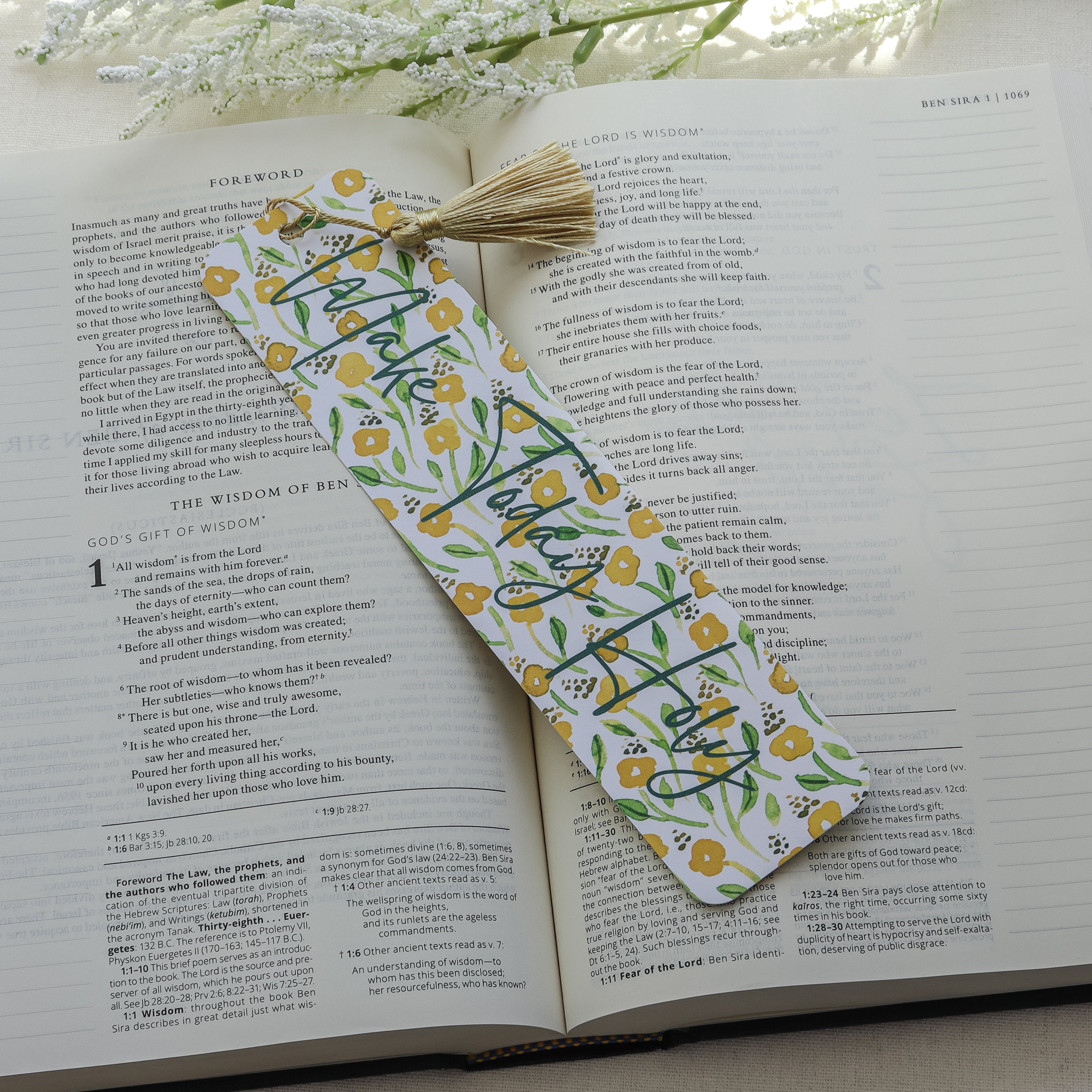This 2"x8" bookmark is designed to encourage and uplift you each time you read. Featuring “Make Today Holy” yellow floral artwork on both sides, it’s printed on extra heavy matte cardstock that feels smooth and durable in your hands. The gold tassel adds a timeless finishing touch, making it easy to find your place in your Bible, prayer journal, or favorite book.