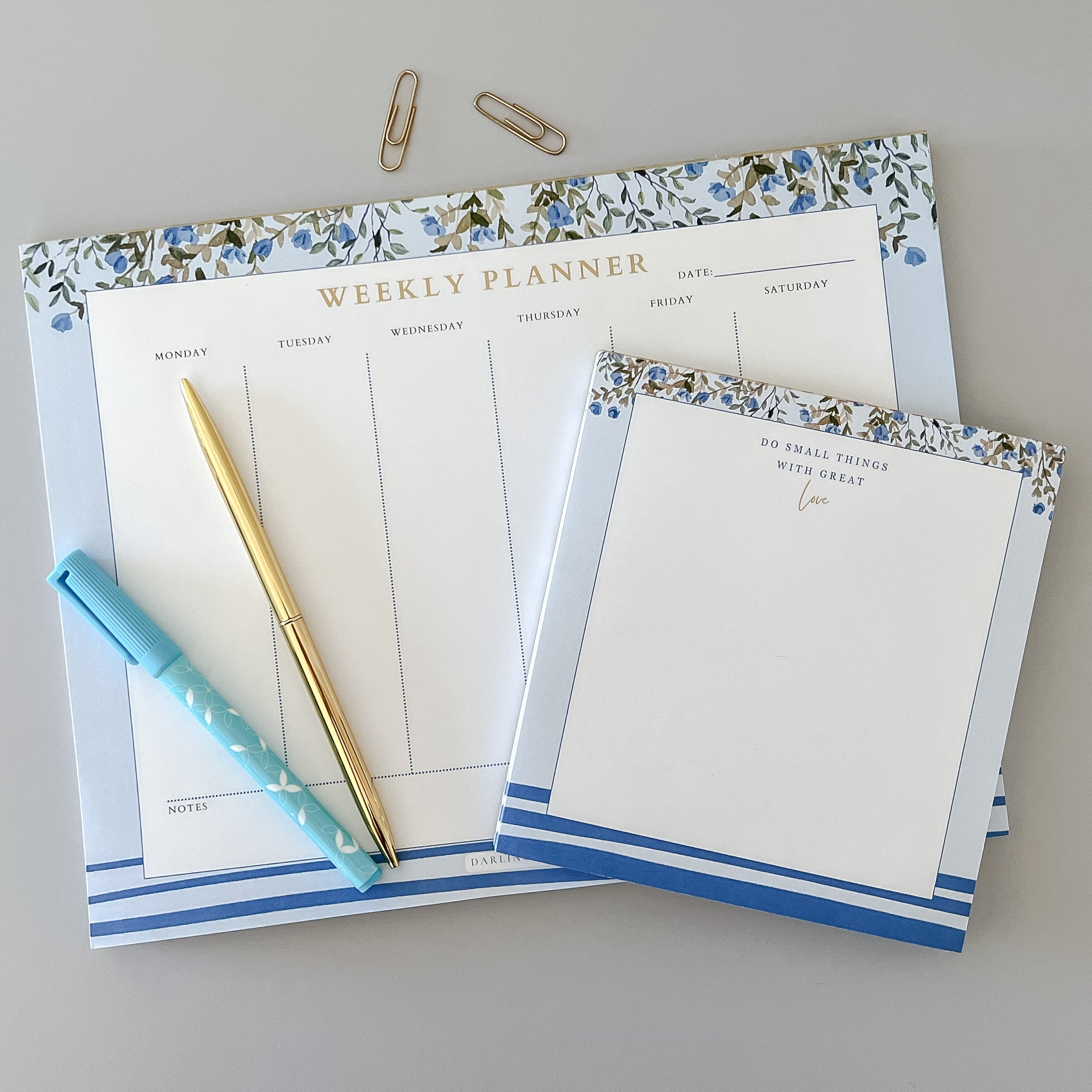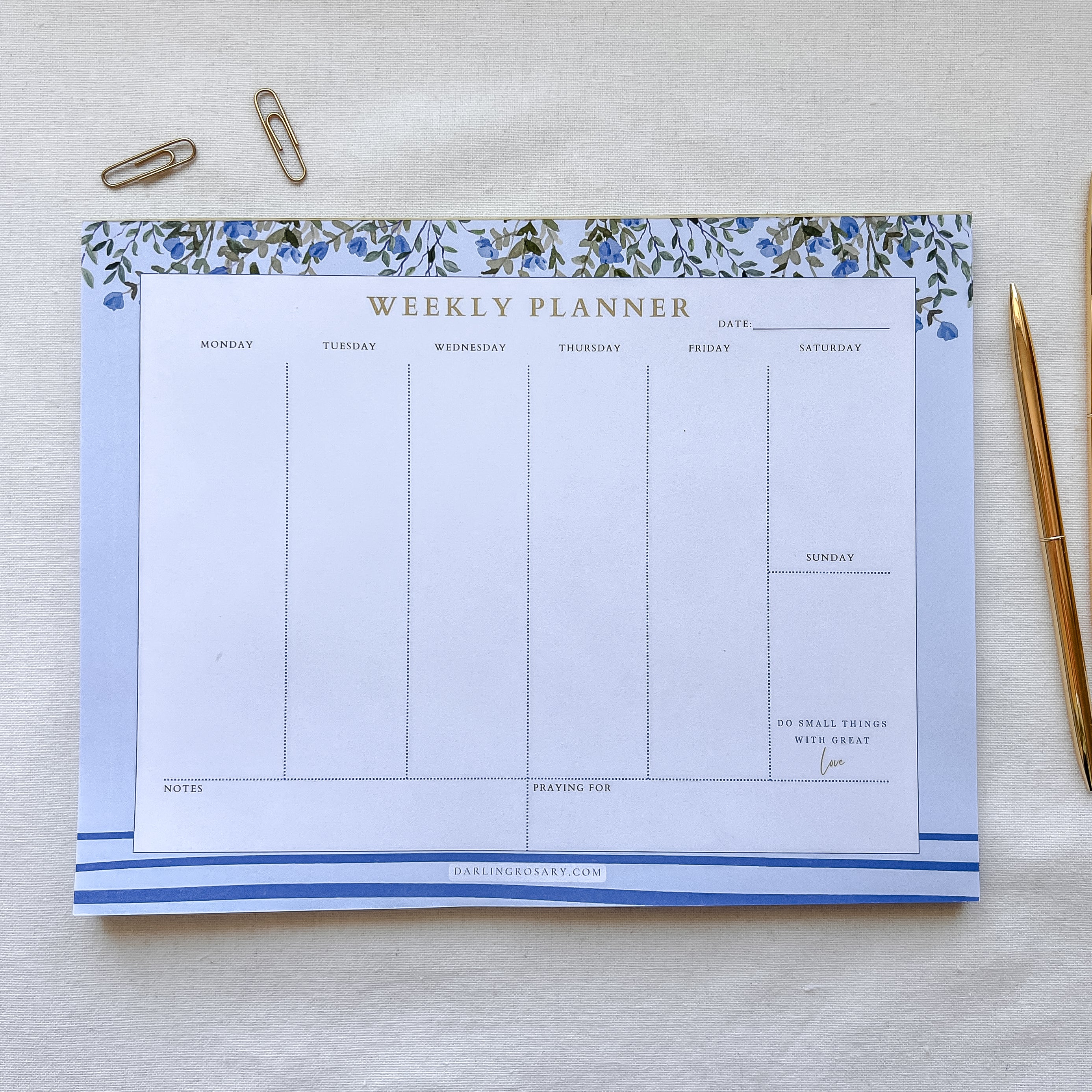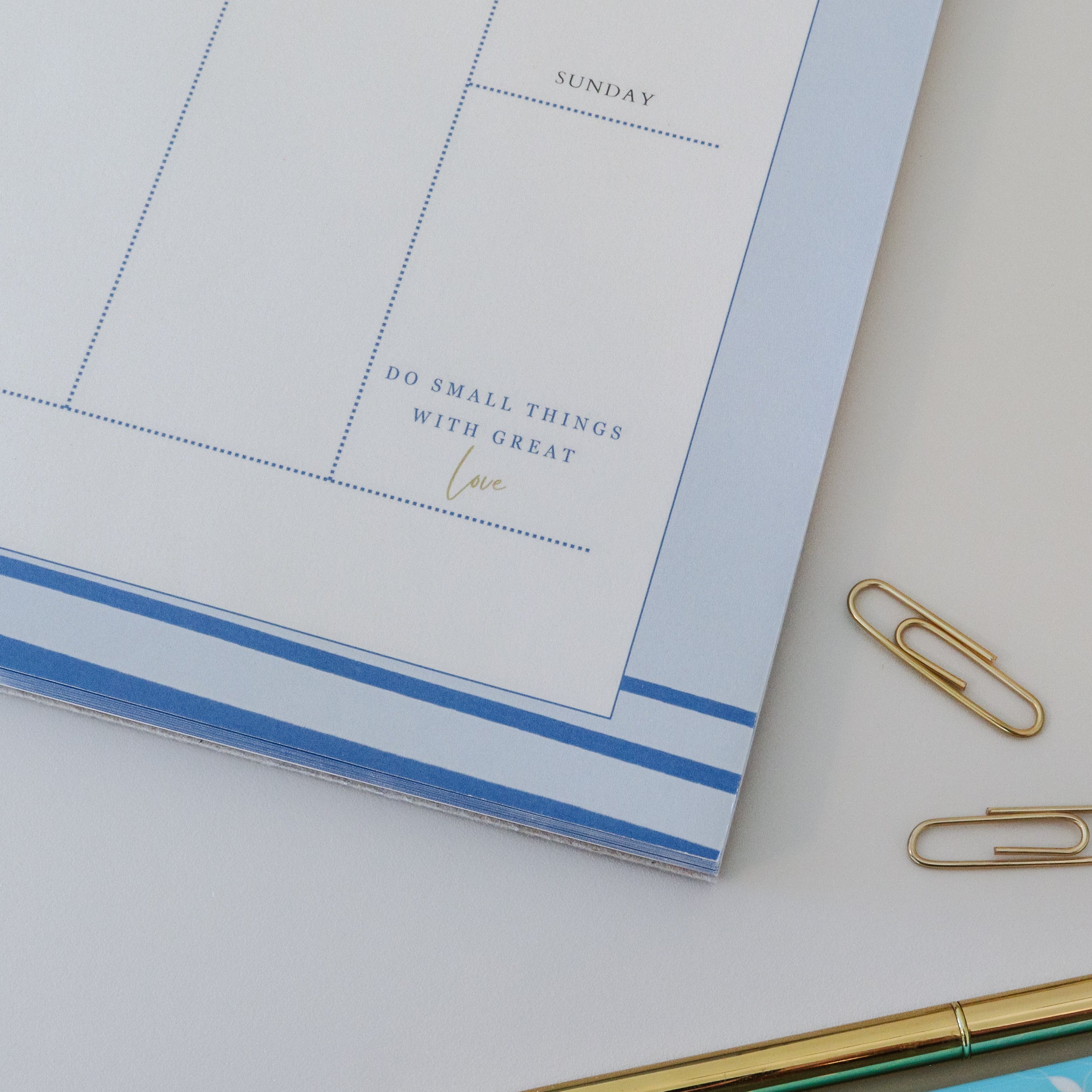Part of our Saint Teresa of Calcutta-inspired collection, this weekly planner pad features blue floral accents, soft stripes like her iconic sari, and her cherished quote: “Do small things with great love.” It brings peace and intentionality to your week as you plan your days with faith at the center.