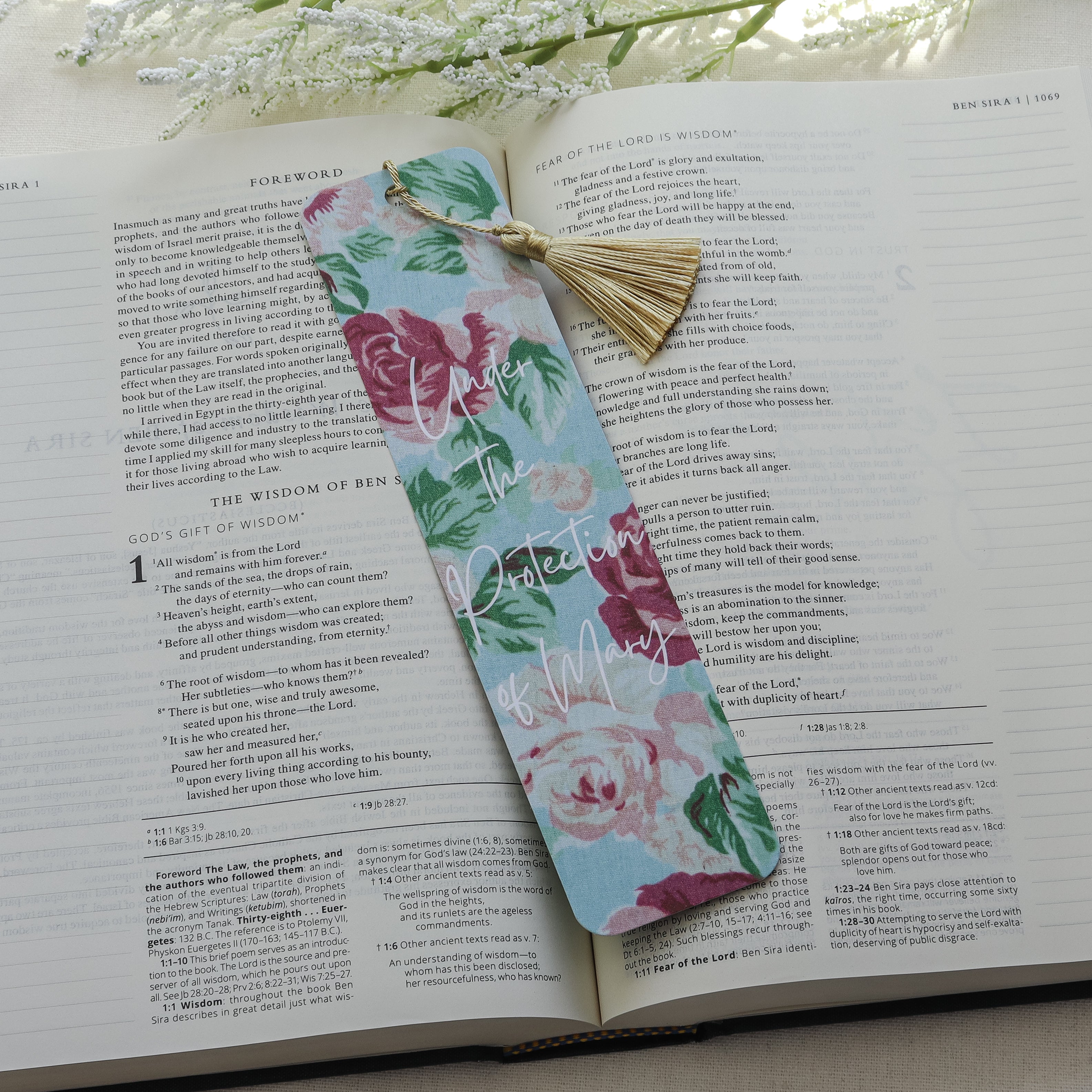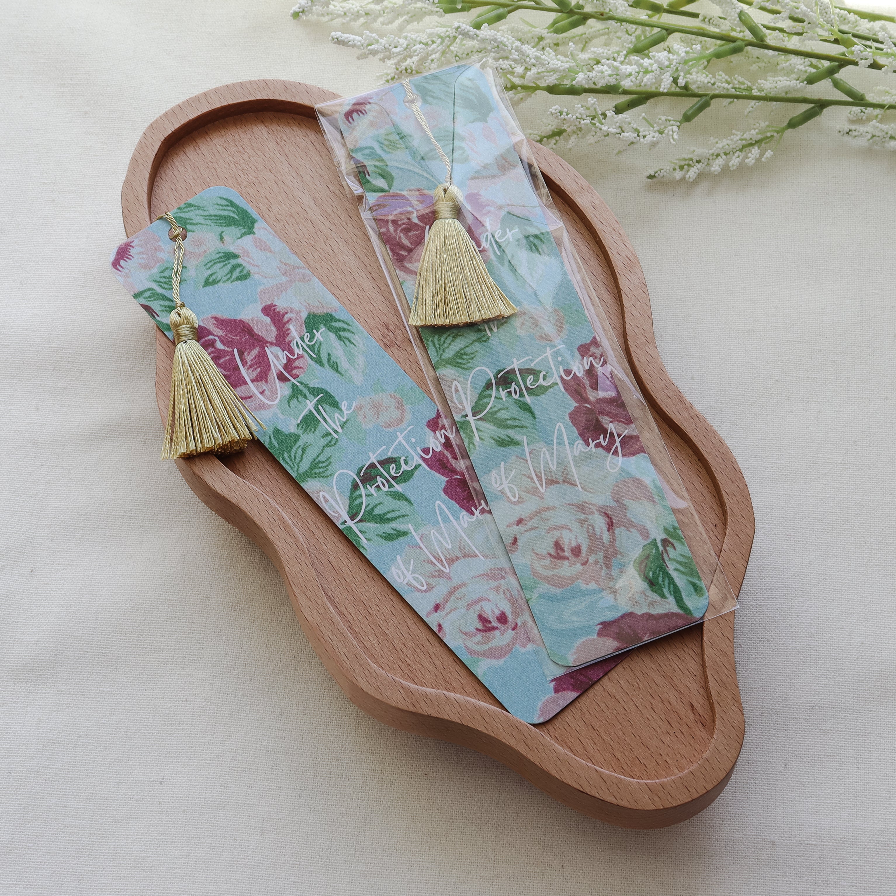 Keep Mary’s gentle protection close with this “Protection of Mary” double-sided bookmark, finished with a gold tassel.