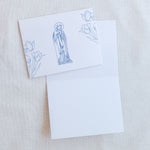 Our greeting cards are printed on heavy, high-quality 110 lb/300 gsm white cardstock. Individual greeting cards will come packed in a cellophane bag to protect during shipping. Packs of 6 or 12 cards will come in a complimentary gold, clear-top decorative gift box with cotton ribbon. Please note that colors may vary by monitor or device and what you receive may look slightly different in person.