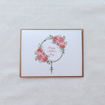 Our greeting cards are printed on heavy, high-quality 110 lb/300 gsm white cardstock. Individual greeting cards will come packed in a cellophane bag to protect during shipping. Packs of 6 or 12 cards will come in a complimentary gold, clear-top decorative gift box with cotton ribbon. Please note that colors may vary by monitor or device and what you receive may look slightly different in person.