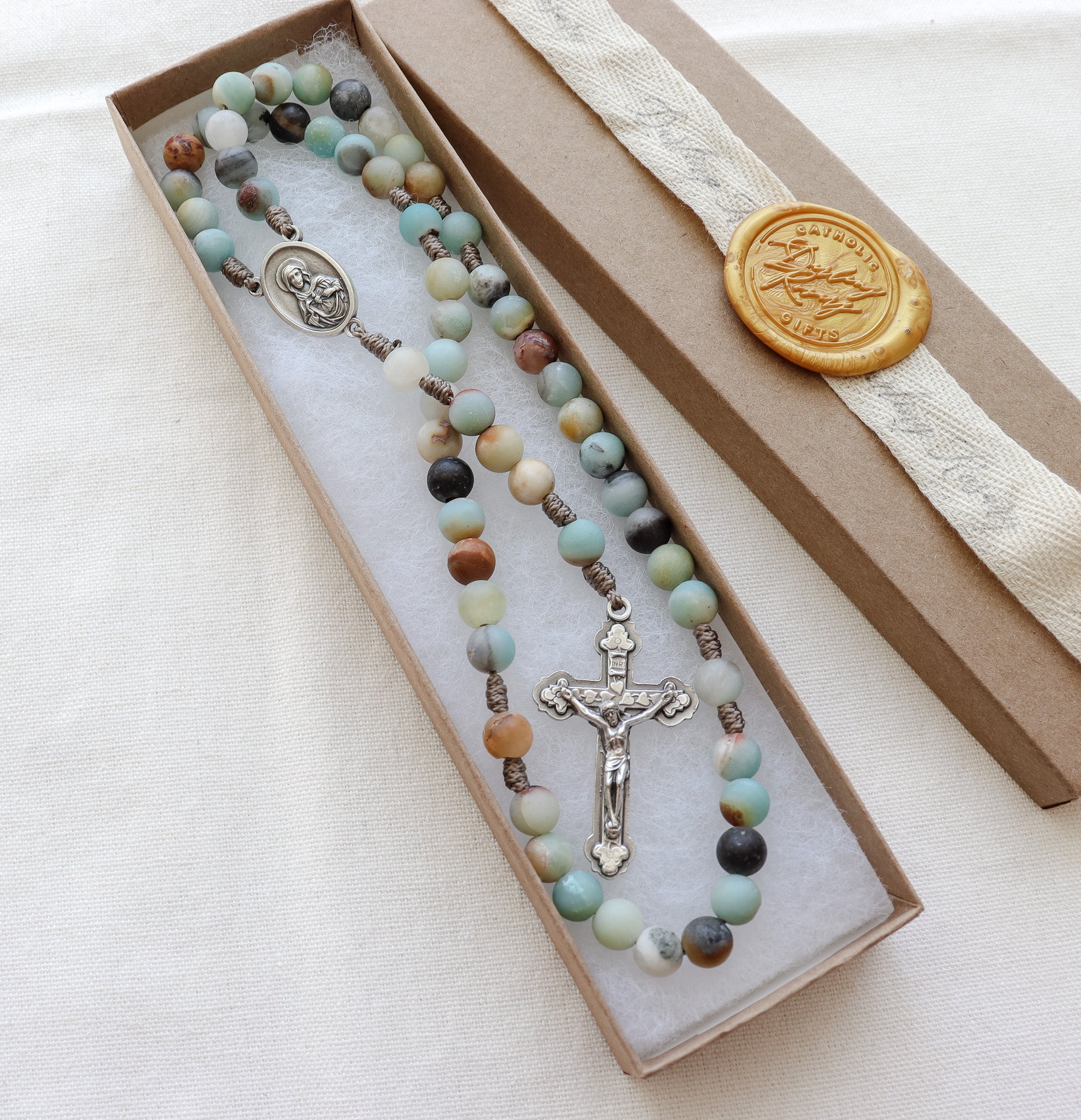 This gentle rosary is handmade for Catholic women who want to center their hearts on Mary’s love through prayer each day. The smooth amazonite beads create a soothing rhythm for your prayers, inviting moments of calm and reflection amid your busy routines. Strung on slim yet sturdy 90 lb paracord, it’s built to endure everyday use without fraying or breaking, ready to journey with you through life’s quiet and joyful seasons.